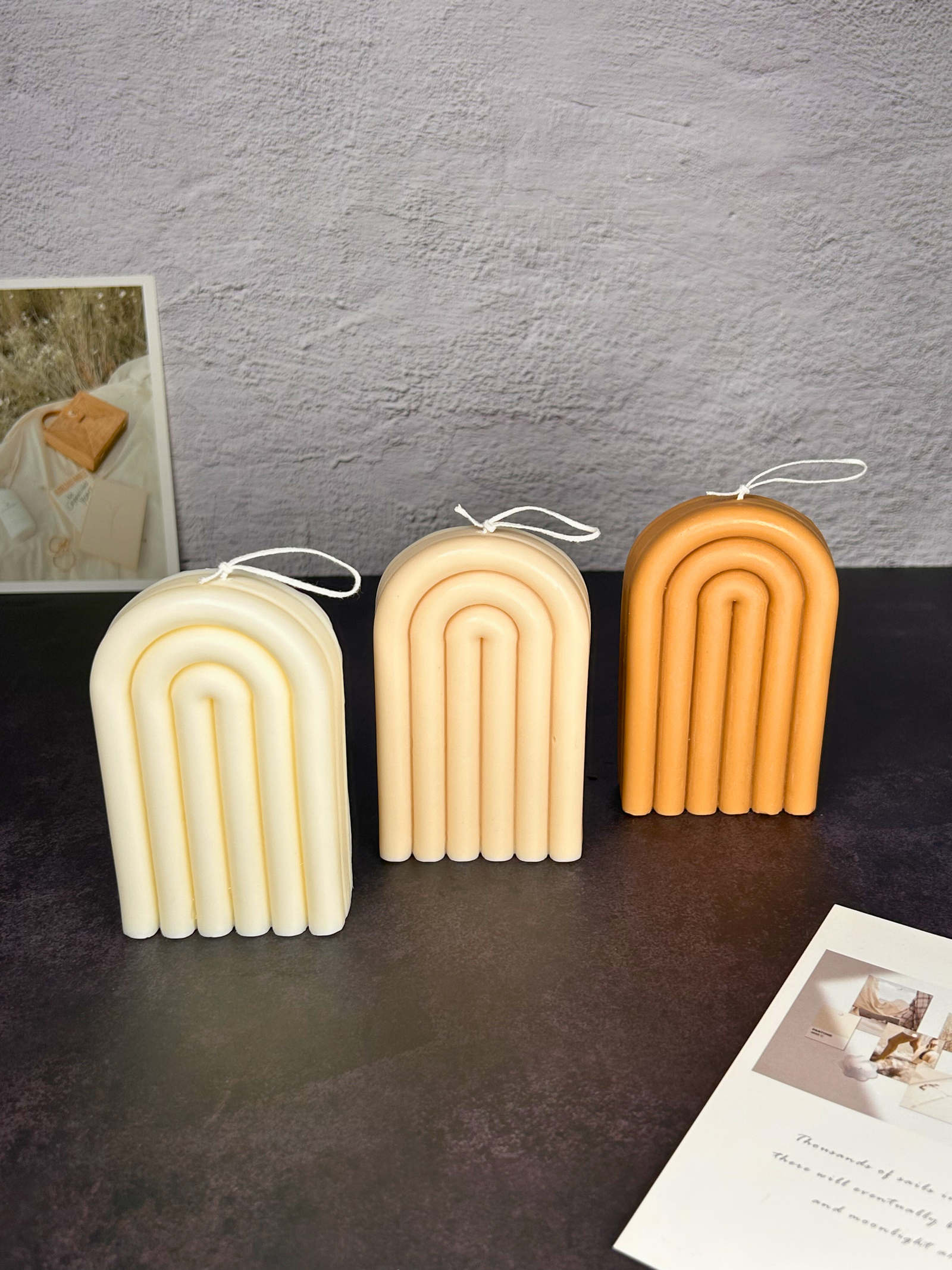 Vela decorativa de cera vegetal con forma de arcoíris y acabado mate. Su diseño suave y curvo aporta un toque alegre y delicado, ideal para llenar cualquier espacio de calidez y positividad. Perfecta para crear ambientes acogedores o para combinar con otras velas y detalles decorativos.